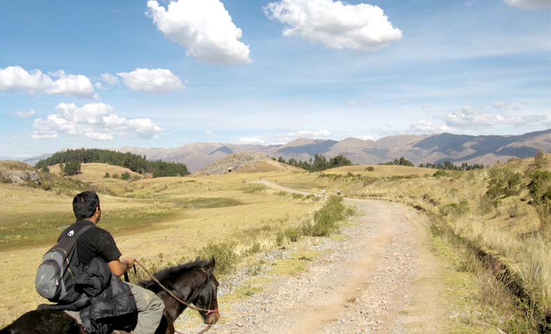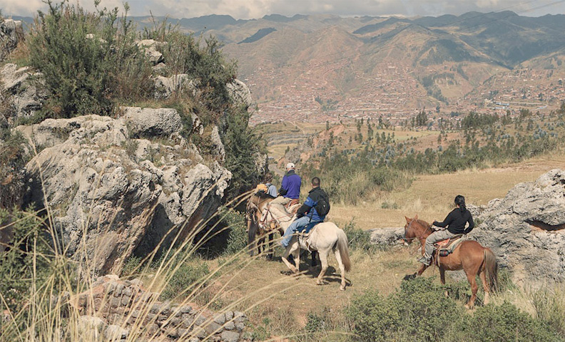 Em primeiro lugar, buscamos nos hotéis minutos antes da hora programada. Em seguida, transfere-se os passageiros ao rancho localizado perto das imediações da zona de Sacsayhuaman e Qenqo, lugar onde se inicia este tour a cavalo. Seguidamente, o guia arrieiro fornecerá as assistências e indicações sobre o percurso. Depois, inicia-se a cavalgada e desfruta-se das paisagens muito bonitas ao longo da rota com vista para a cidade. Da mesma forma, pode-se visitar algumas zonas importantes como a huaca do sol, o templo da lua, o balcão do diabo e com vistas para zonas arqueológicas. Depois, retornarão ao rancho para deixar os cavalos. Finalmente, tomarão o transporte e retorna-se até a praça central, culminando assim este bonito passeio. Opcional: O cliente, se tiver seu bilhete turístico, pode visitar Sacsayhuaman e descer por conta própria.