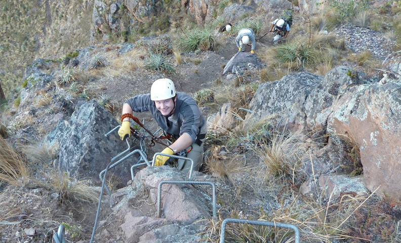 Viva uma aventura inesquecível em Cusco com nosso tour de Via Ferrata e Zipline. Desafie seus limites escalando impressionantes paredes rochosas e sinta a adrenalina ao deslizar por cabos de aço através de paisagens andinas. Sem experiência prévia necessária! Nossa atividade é perfeita para os amantes do esporte de aventura de todas as idades (a partir de 8 anos) e conta com todos os equipamentos de segurança necessários para garantir uma experiência emocionante e segura. Você ascenderá 400 metros e percorrerá 2400 metros de cabos. Uma experiência única que você não esquecerá!
